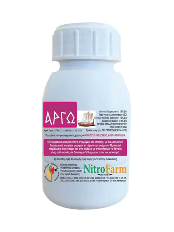 Το ΑΡΓΩ 1.8EC (100 cc) είναι ένα εντομοκτόνο – ακαρεοκτόνο γαλακτωματοποιήσιμου υγρού (EC) με βάση την δραστική ουσία Abamectin 1.8%. Δρα στομάχου και επαφής, προκαλώντας παράλυση στα έντομα και ακάρεα, οδηγώντας σε θάνατο μέσα σε 3–5 ημέρες. Ιδανικό για την καταπολέμηση τετρανύχων, θριπών, ψύλλας, φυλλορύκτων και άλλων επιβλαβών ειδών σε καλλιέργειες όπως εσπεριδοειδή, κηπευτικά, φράουλα, αμπέλι και καλλωπιστικά.